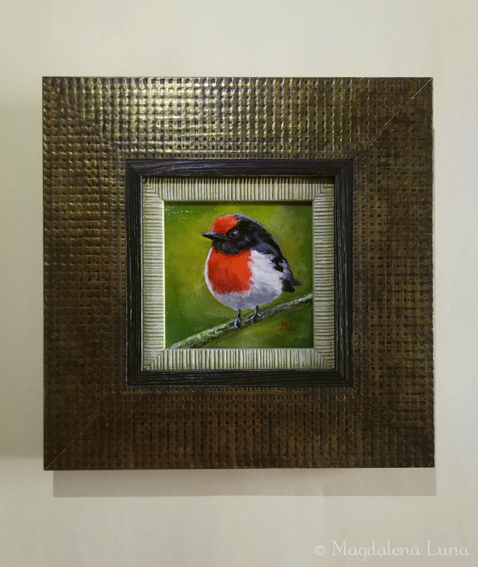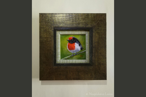 Original acrylic painting on canvas. Framed in a Spanish made, wide patterned wooden frame.
