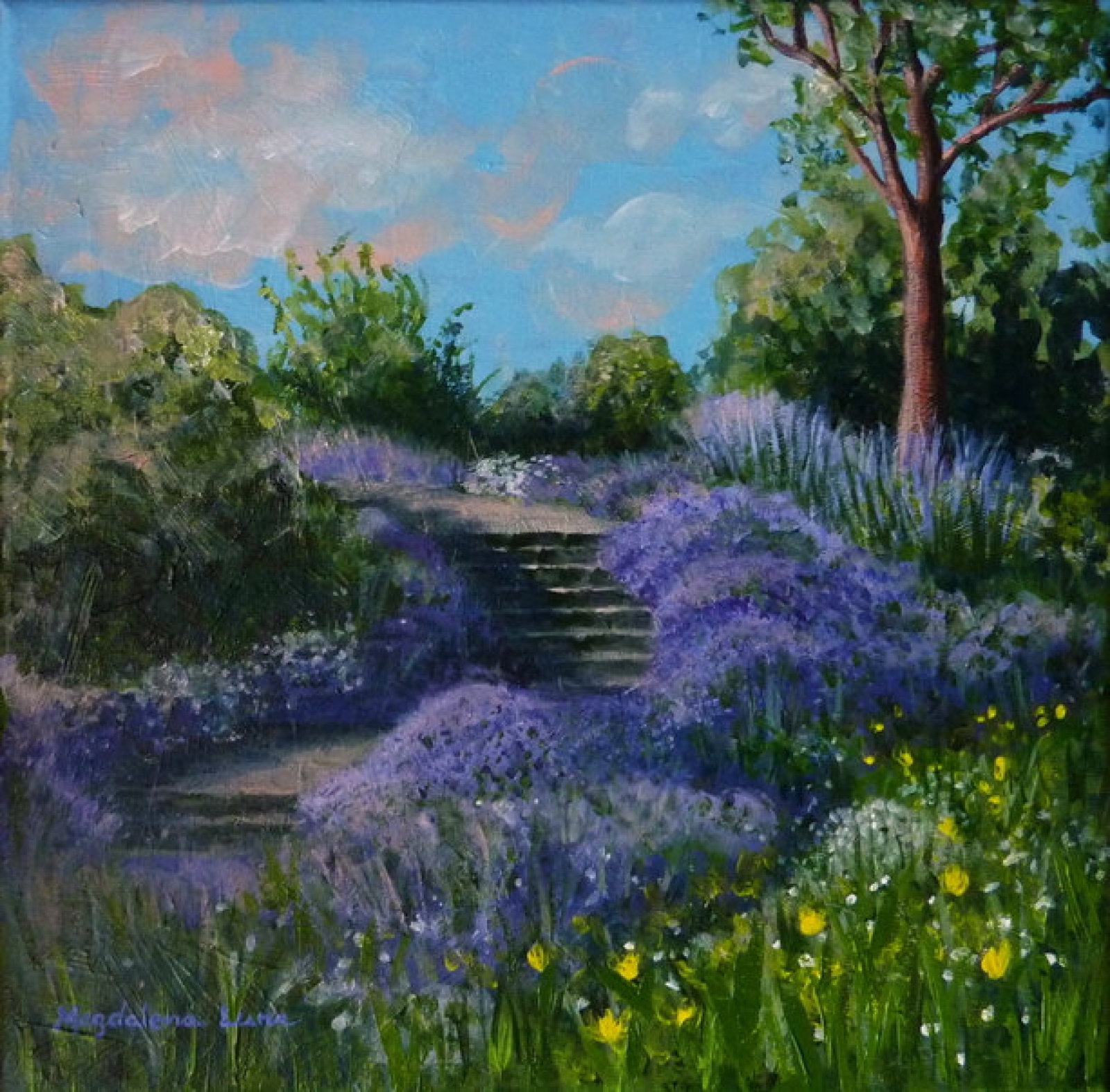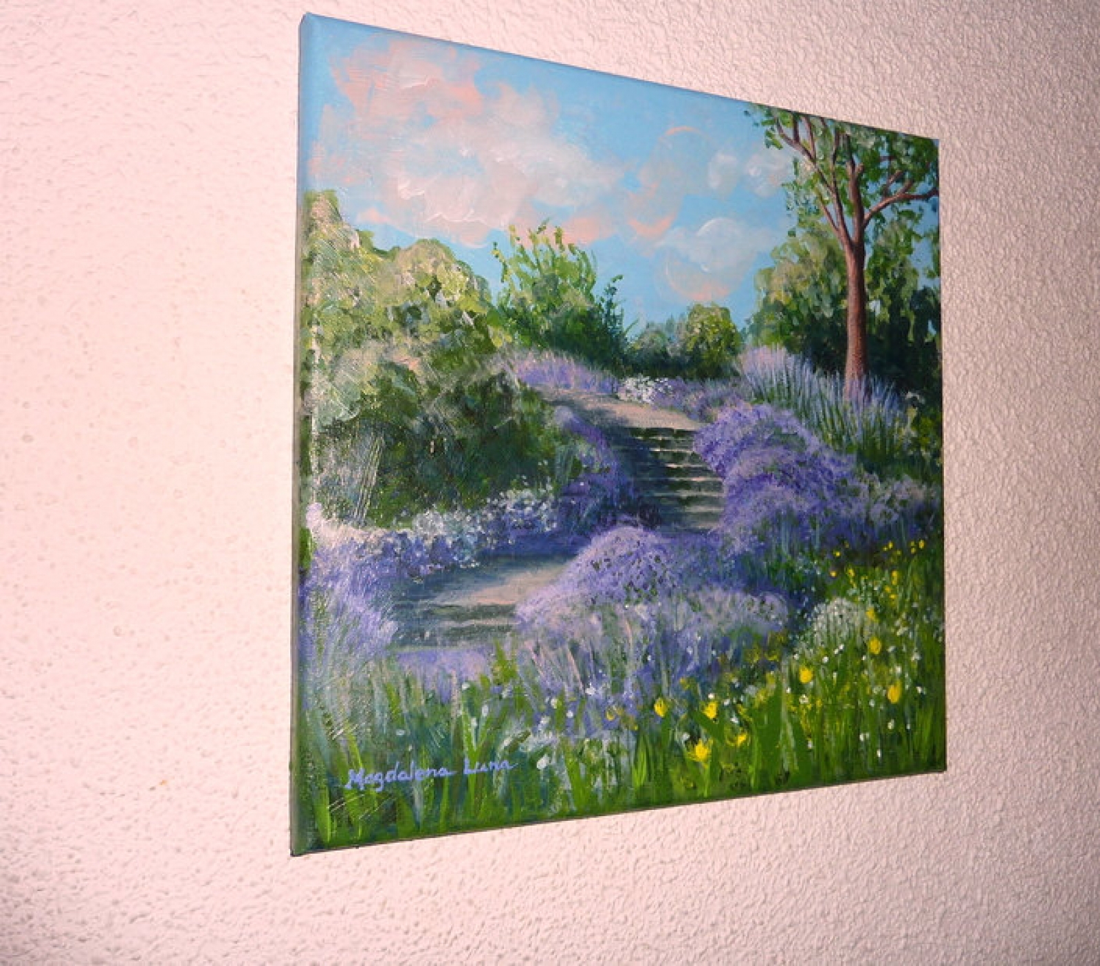 "Spring evening garden" is exactly that. A lovely mediterranean garden with a pathway across, calling for a quiet walk among the lavender bushes, yellow tulips and fragrant herbs.